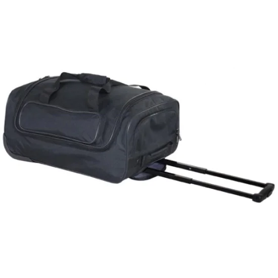 - Locking telescoping trolley handle extends to a maximum length of 40″.