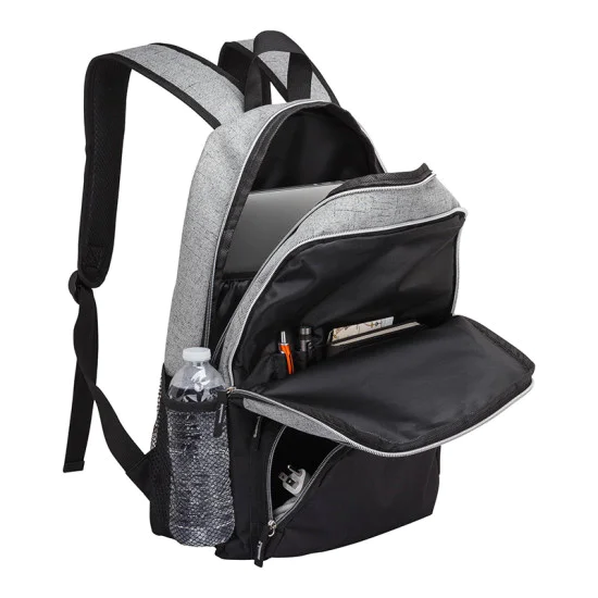 The Alabama two-tone laptop backpack is the perfect companion for a day on campus. This backpack features a wide gusseted bottom for easy packing, metallic zippers, a convenient 15″ laptop pocket, a zippered compartment with organizer, two smaller zippered front compartments and two side mesh pockets. The adjustable padded shoulder straps and convenient top handle make it easy to carry.