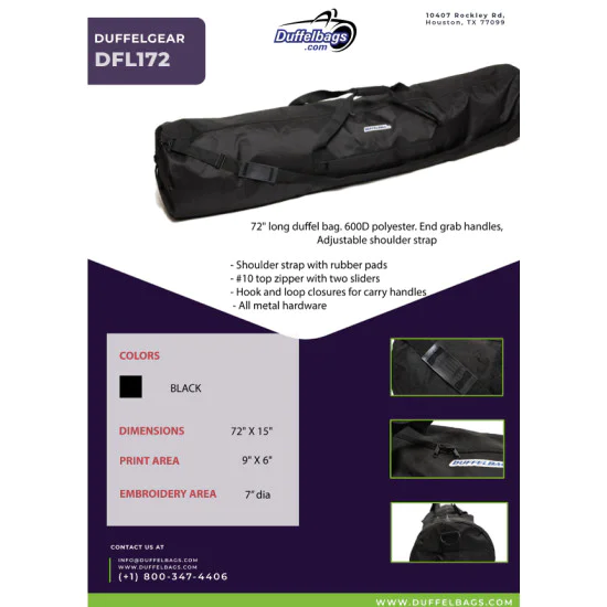 The ultimate equipment duffel bag. This long duffel bag comes in 2
