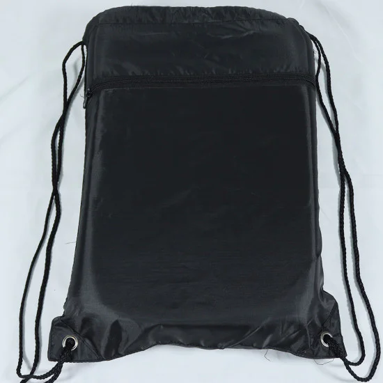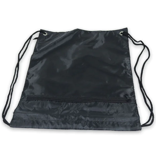 DuffelGear drawstring bags are the perfect companion for your gym bags. With 210 Denier nylon and a front zipper pocket this bag is perfect for your wet clothes. Durable fabric as well as reinforced tabs at the bottom of the drawstring bag make this a cost effective but durable option for drawstring bags. Comes in solid black.