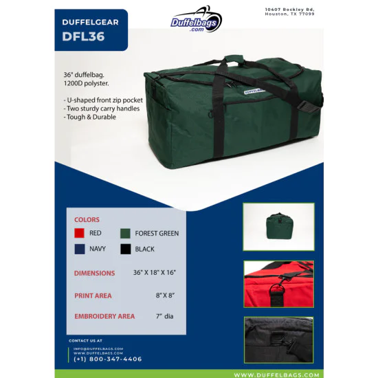 The Grand Canyon duffle bag is the mother of all bags! Comes in 3 sizes at 30”,36” and 40”. This is our largest capacity