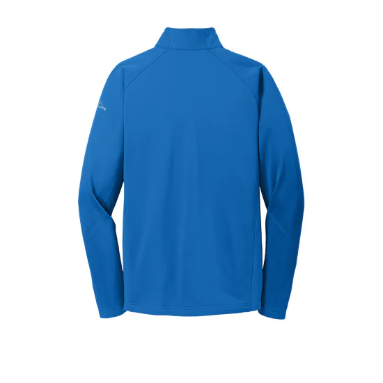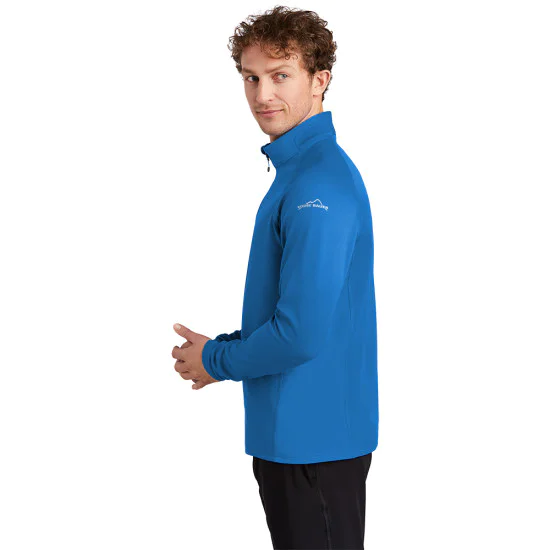 Smooth-faced fleece with a subtle grey print gives this 1/2-zip a sleek performance look. Reverse coil zipper, open cuffs and an open hem. Welded zippered chest pocket, contrast Eddie Bauer heat transfer logo on left sleeve. Made of 7.7-ounce, 95/5 poly/spandex.