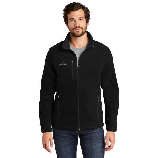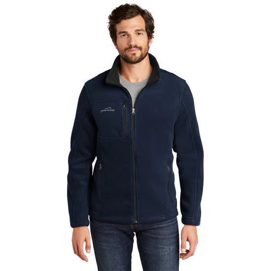 This super soft and warm jacket is as comfortable as it gets for fall hikes and everyday excursions. Contrast roll-top collar, zippered chest pocket, contrast reverse coil zippers, front zippered pockets with tricot lining, open cuffs and an open hem. Embroidered Eddie Bauer contrast logo on right chest. Made of 6.9-ounce, 100% polyester fleece. Produced using Low Impact Technology (L.I.T.™) which uses less dyestuffs, thermal energy and water for enhanced softness, performance and after-care quality.