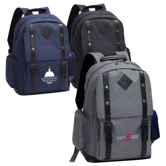 - This stylish, handsome backpack is decorated with dual belt straps with magnetic snaps that makes it stand out from the crowd!