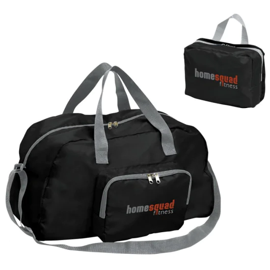 - To condense, simply reverse the front zipper pocket and tuck in the duffel bag inside to form the easy-to-carry pouch.