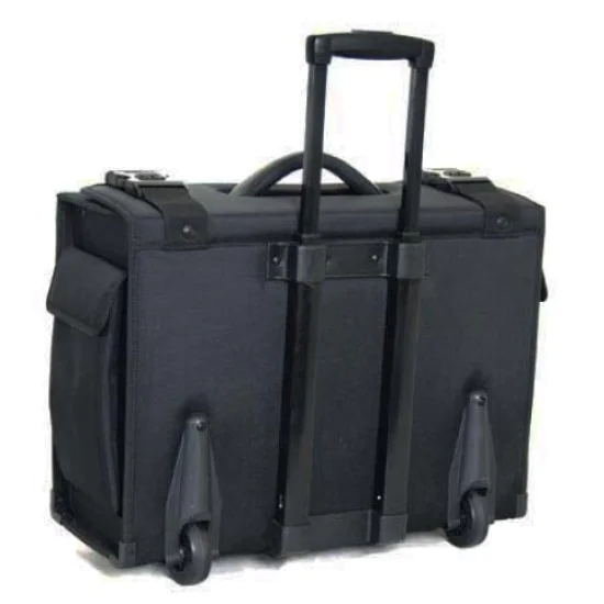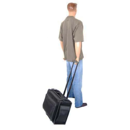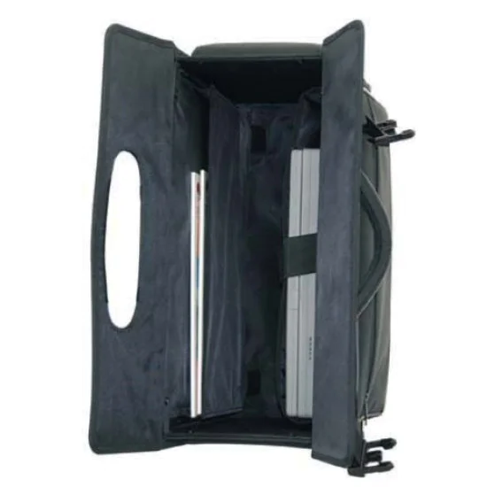 - The front compartment open out provides access to the organizer panel and file folder pockets.
