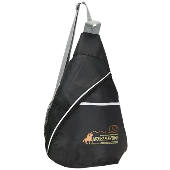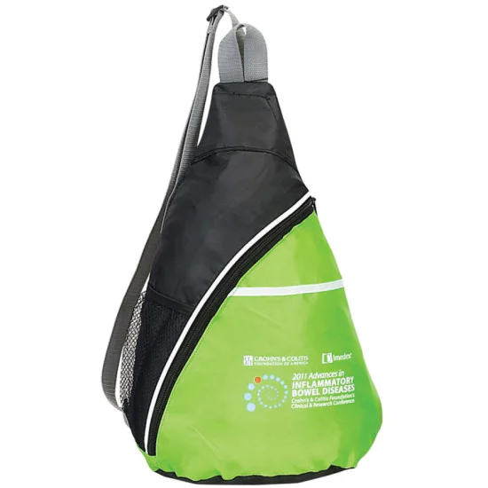 Made of 210d poly, this adorable, affordable sling is ideal as a give-away item at most events. Super lightweight, it features a spacious main compartment for your personal items, an open pocket in front and a mesh pocket on the side.