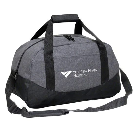 Made of modern 600D heather poly-canvas, this duffle bag mixes simplicity and style. Featuring a zippered main compartment and a front open pocket this duffle bag is a perfect gym bag or weekender
