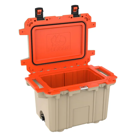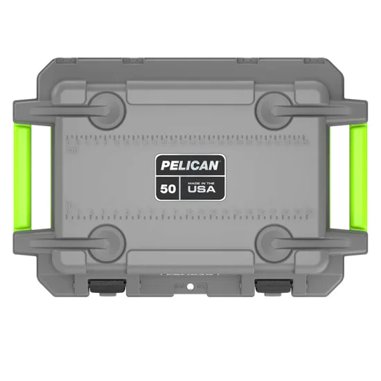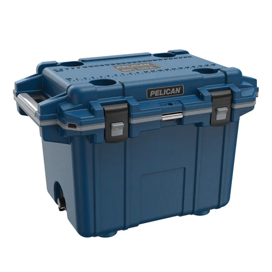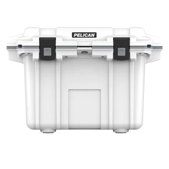50 quart Pelican™ Elite coolers perform to the highest of standards — better and tougher than any other cold locker or icebox. Pelican Products has protected defense, emergency and scientific expedition equipment through some of the harshest conditions on Earth since 1976. Extreme insulation keeps ice for up to eight days. The molded-in lock hasp keeps your contents secure and has an integrated bottle opener. It also features and integrated fish scale on the lid, molded-in carry handles and four can holders. The cooler has a sloped floor and a tethered drain plug that is threaded for a standard garden hose. It is made in the USA and offers a lifetime guarantee.
