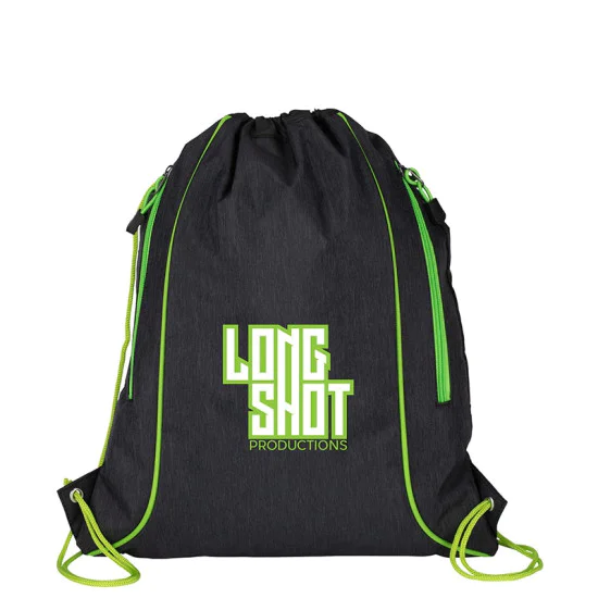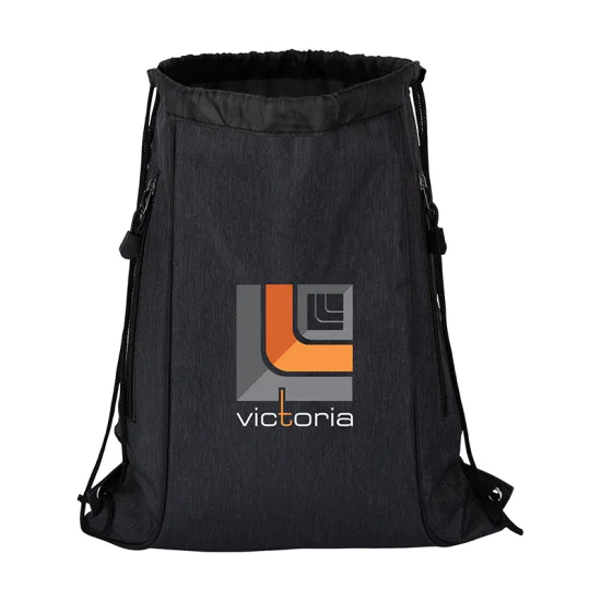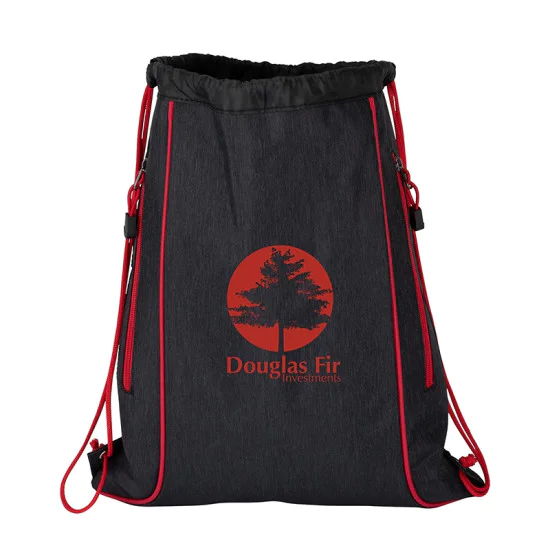The Seville drawstring bag is made of water resistant coated polyester and 210D polyester, has colored accents and 2 vertical front zippered pockets. It has a sporty look and is convenient to use at the gym, beach or park. The drawstrings double as backpack straps and it’s light and easy to carry.