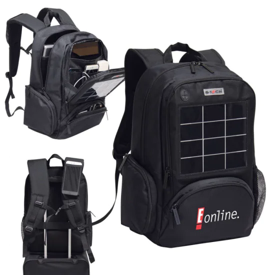 This cutting edge backpack is built to last! Never worry about your mobile devices running out of power. Completely redesigned with industrial-grade solar cells which charge quickly in direct sunlight. The solar charging is a breeze to set up. Simply plug your original USB charging cable into the USB port provided on the bag and stand in direct sunlight to begin charging! It can directly charge to your device, or store the charge in your power bank by connecting it to your power bank. It charges most brands of cell phones & tablets. The backpack is packed with features including a tablet pocket, 2 open pockets, and a mesh zip pocket inside the top zip compartment. The bottom zip compartment has pockets for business accessories and stationery. A computer sleeve inside the main compartment stores a 15.4” laptop. Sides of the backpack have a zip pocket for accessories and a mesh