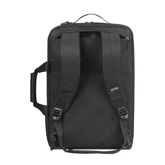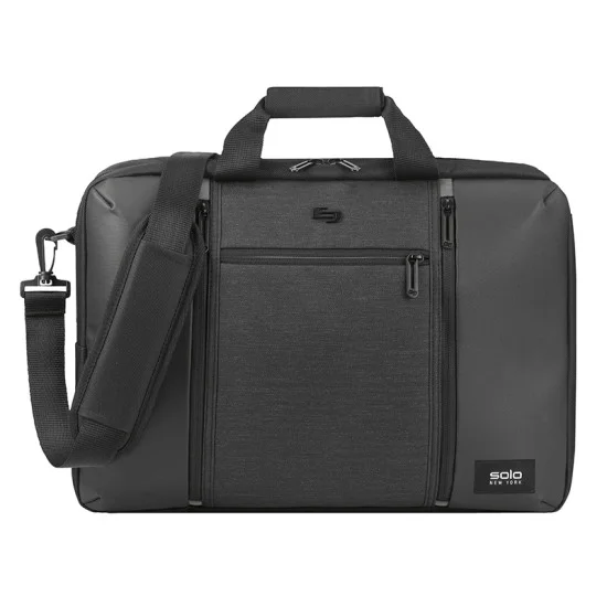 Designed for those who love convenience, variety and comfort, the Solo® Highpass Hybrid Briefcase Backpack is a must-have. It is a 3-in-1 bag that transforms from a briefcase to a backpack to an over-the-shoulder bag. Use it for your business meetings and carry your 15.6” laptop/ultrabook or 15” Macbook in the fully padded laptop compartment and your tablet in the internal iPad®/tablet pocket. You can hold it with its webbed handles with a hook and loop pad or with its side grab handle and store small items in the 3 front zippered pockets. This bag is made for your business and weekend travels as you can move through the airport quickly with the back panel that slides over your luggage handle. Wear this bag as a backpack with its padded backpack straps when traveling or hide away the straps and wear it over the shoulder with its 1 1/2″ x 46 1/2” padded, removable and adjustable shoulder strap. From the Solo® Gravity Collection