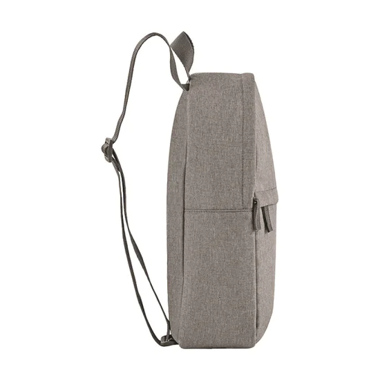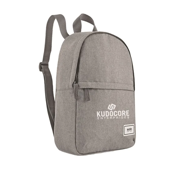 The Solo® Re:cycled Collection presents the Re:vive Mini Backpack made from a heathered grey material created with 6 recycled PET bottles. This backpack has black camo lining and a key fob to hang your keys. With a front zippered pocket, a carry handle and adjustable shoulder straps, wear this backpack when on-the-go and carry your essentials in style. The Re:vive Mini Backpack has a 5-year limited warranty. Promote your brand with this classic mini backpack and offer it to your employees as a new hire gift or as an incentive gift. Purchase with purpose as the National Forest Foundation will plant a tree with the sale of each Re:vive Mini Backpack!