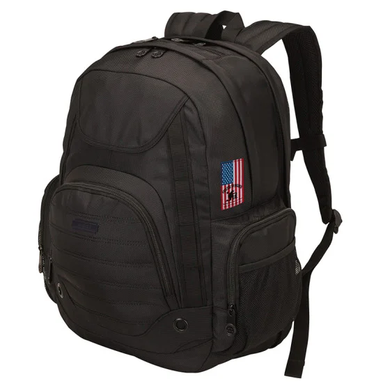 The fully-lined Work-Pro backpack is made with heavy-duty 1680D, rip stop and 210D lining. It features a TSA-friendly open-flat section with padded 15.6″ laptop compartment with hook and loop security strap, tablet pocket with hook and loop security strap, slip pocket and a zippered pocket. There is a convenient easy-access top zippered pocket for your valuables and the large center compartment has an organizer and zippered pocket. The zippered front compartment has multiple pockets and is a great place to store your accessories. It also includes two zippered side pockets and two mesh side pockets as well as a carry handle, padded air mesh back and adjustable backpack straps, a chest strap and trolley handle pass-through strap. A portion of all proceeds are donated to Shelter to Soldier™, a non-profit organization that rescues dogs to train as service animals for veterans in need.